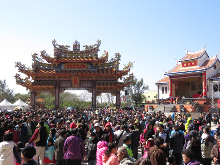 新春期間,民眾傳統會去廟裡拜拜許個平安。今大年初一,大好天氣,廟裡廟外,到處充滿人潮:看表演、領通寶、香湯賜福、過平安橋、登記光明燈....就是個歡愉的新年!
